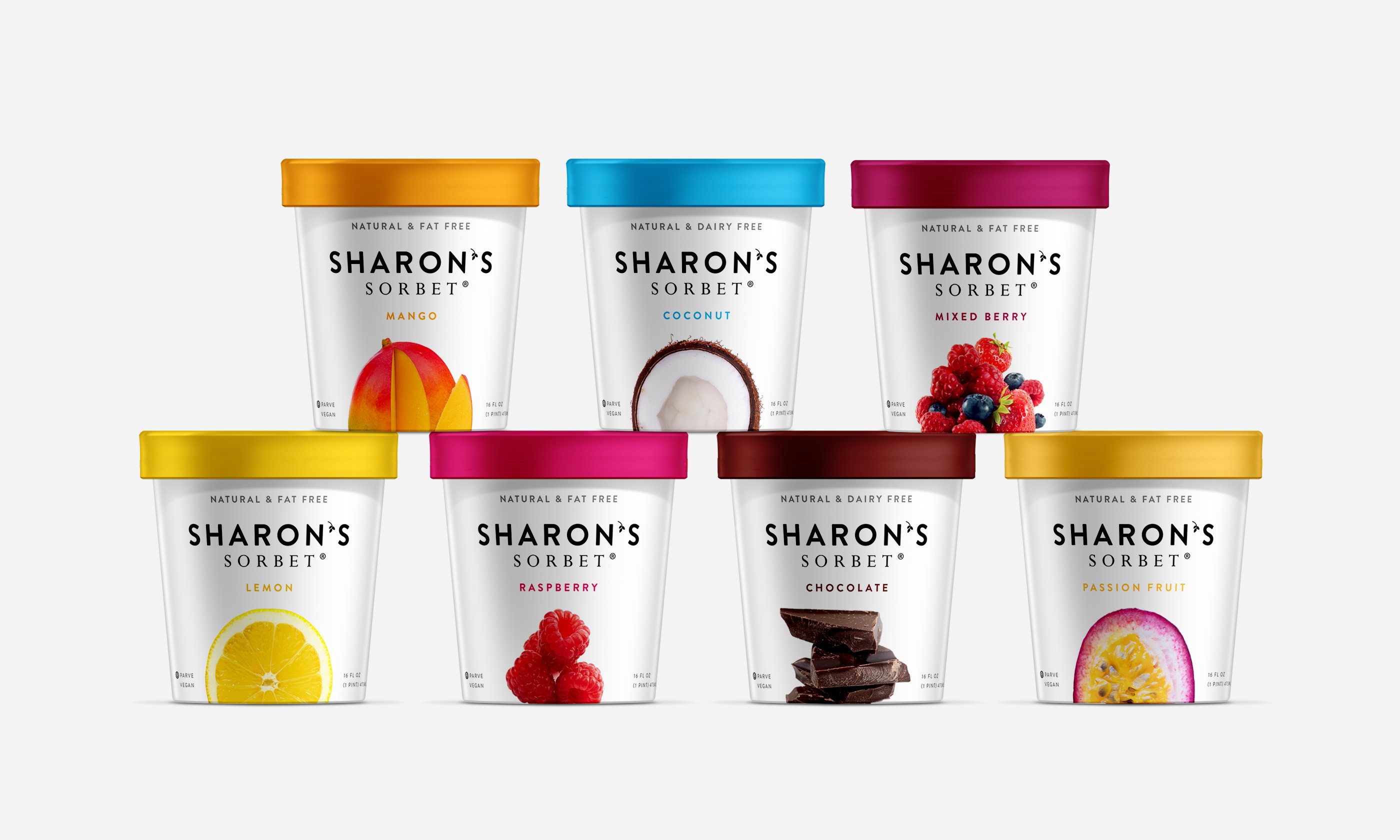Sharon’s original branding lacked both the shelf presence needed to compete in a modern market and felt disconnected from the flavorful sorbet. Our goal was to move toward a more contemporary, 'punchy' aesthetic—one that reflected the natural ingredients within each pint.